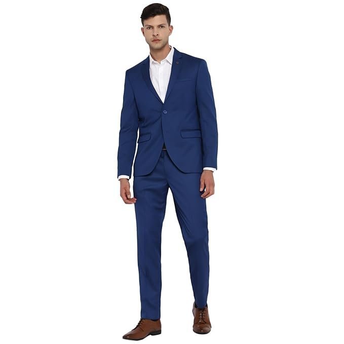 - Design: Features a classic single-breasted, two-button jacket and matching flat-front trousers. The jacket includes notch lapels, a chest pocket, and two side pockets, while the trousers are designed with belt loops and a zip fly.